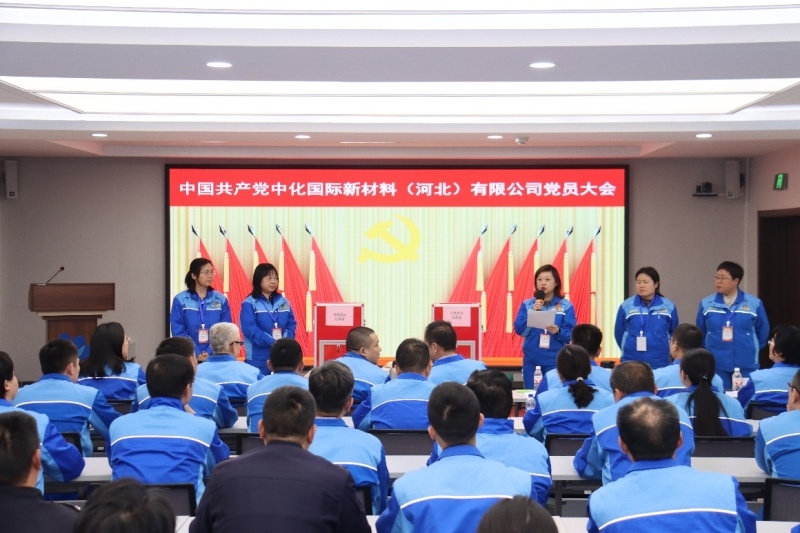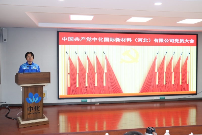 2025年11月17日,中国共产党中化国际新材料(河北)有限公司党员大会胜利召开。会议审议通过了中共中化国际新材料(河北)有限公司委员会工作报告和纪律检查委员会工作报告,选举产生了新一届中共中化国际新材料(河北)有限公司委员会和纪律检查委员会。河北省国资委,化工事业部有关领导同志到会指导,公司全体党员,党外人士代表,入党积极分子,职工群众代表参加会议。大会由公司党委副书记杨任花主持。